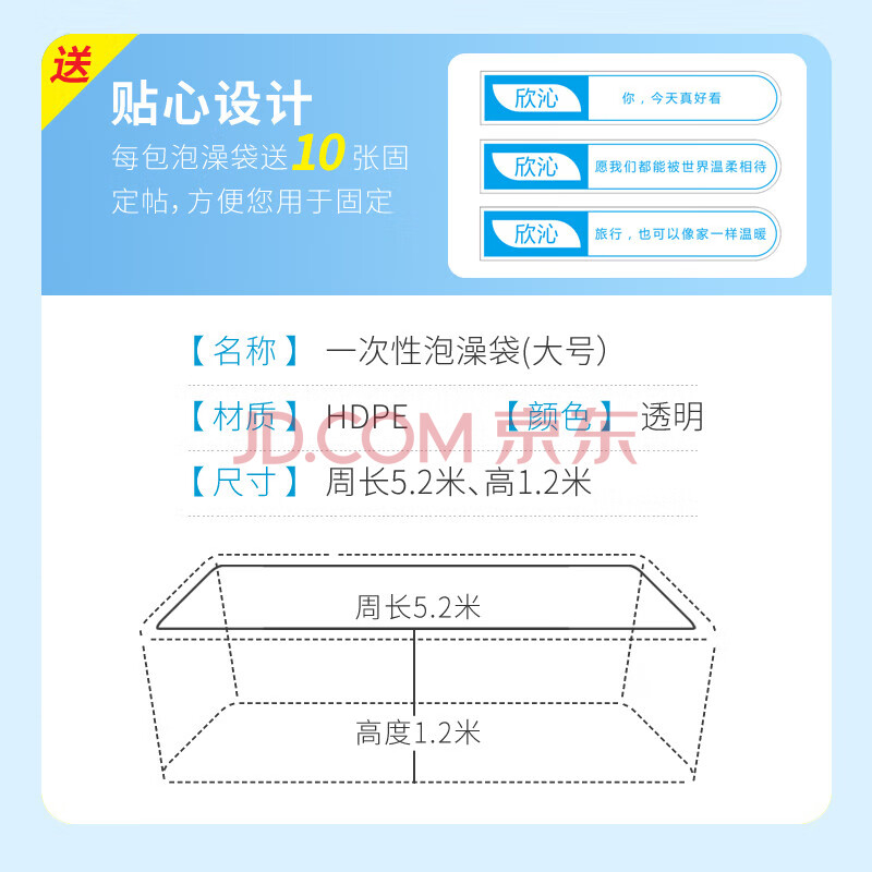 商品相册:欣沁浴缸一次性洗澡袋泡澡袋加厚浴缸套木桶盆洗澡套周长520cm10个装第