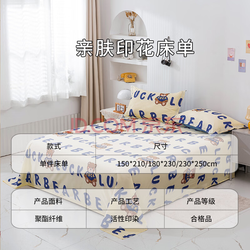 商品相册:艾薇 磨毛床单 学生宿舍单人卡通床单被单单件 幸运熊180*230cm第