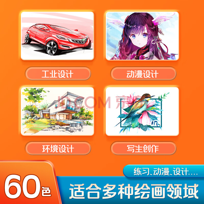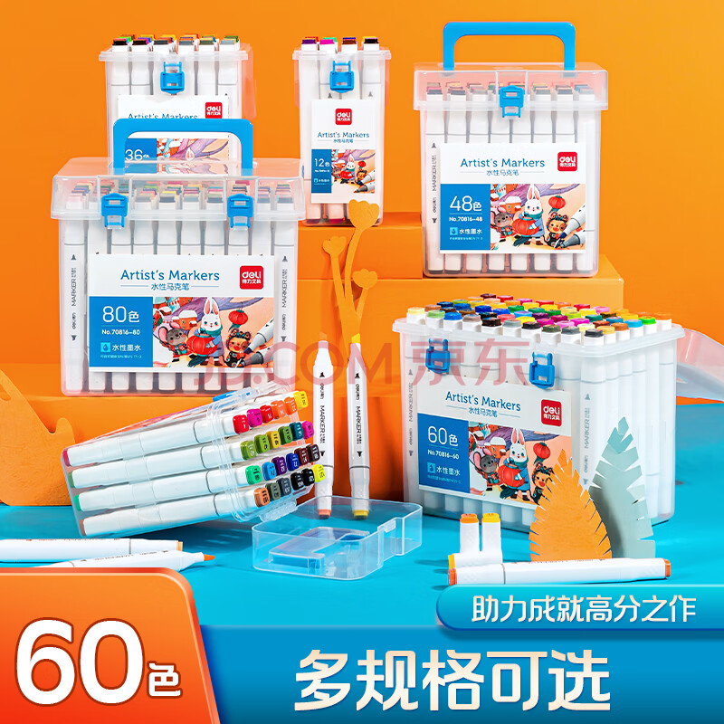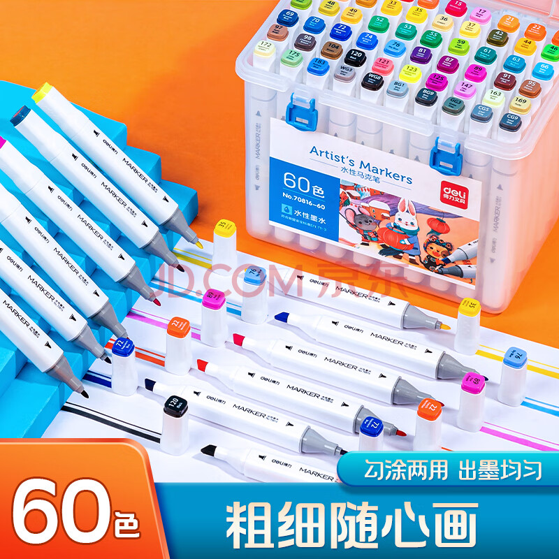 商品相册:得力(deli)水性马克笔60色双头速干方杆大容量学生元旦树水彩笔荧光笔男孩女孩绘画涂色水彩勾线礼物美育第