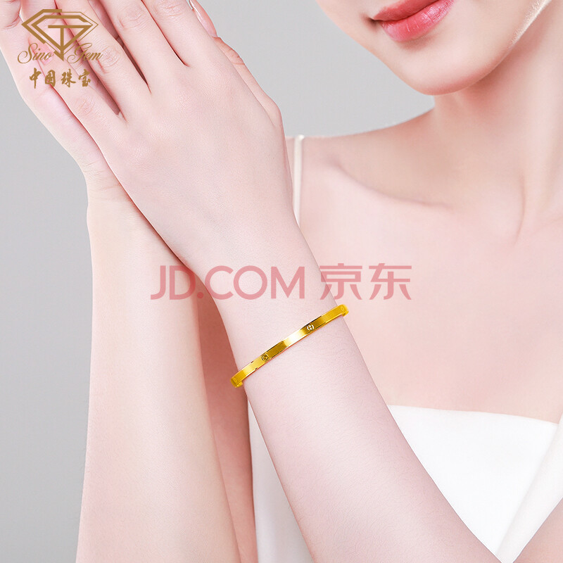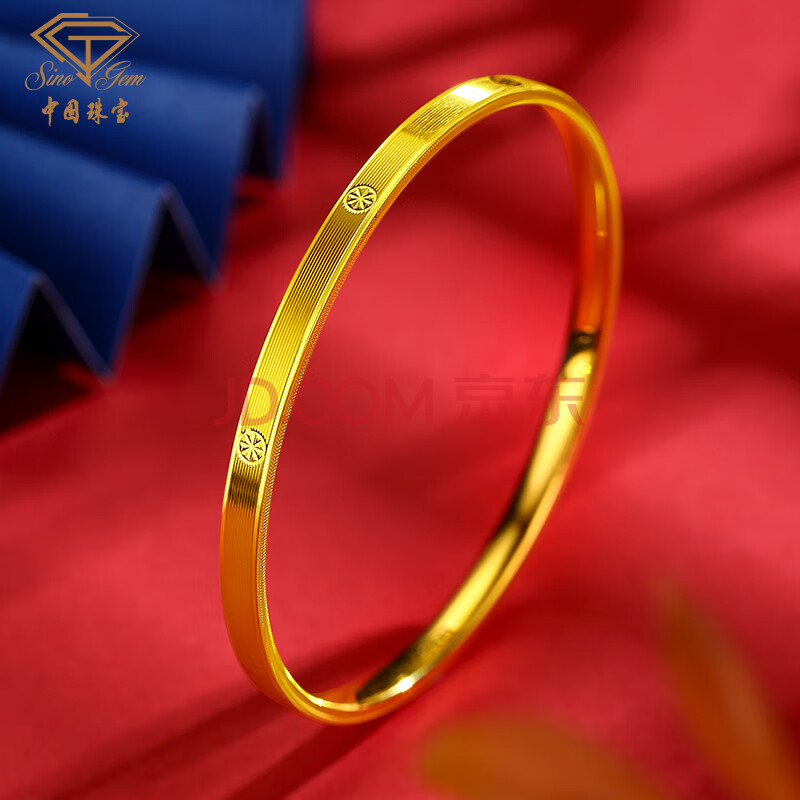 商品相册:中国珠宝生日礼物送女友黄金手镯女款足金5D几何车花手镯简约时尚结婚手镯第