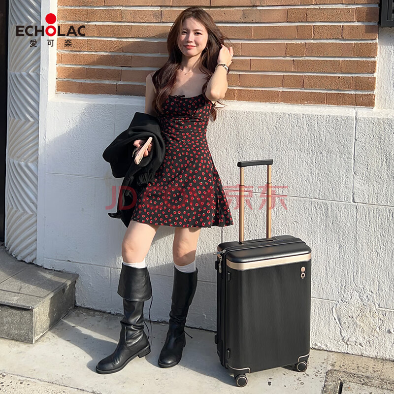 商品相册:爱可乐(Echolac)明星同款大容量行李箱出国旅行箱王朝防刮拉杆箱黑色24吋PC142第