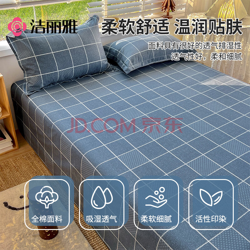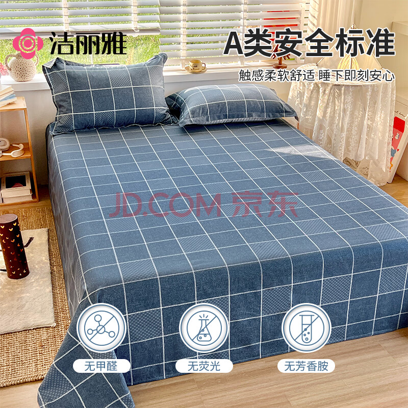商品相册:洁丽雅(Grace)A类抗菌全棉床单100%纯棉学生单人被单床罩1.2米床 蓝调160*230cm第