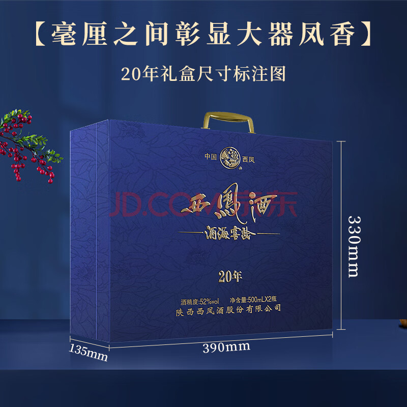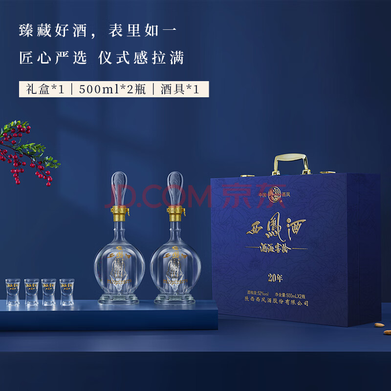 商品相册:西凤酒海窖龄 20年蓝臻礼盒 52度凤香型白酒 500ml*2瓶 商务送礼收藏第