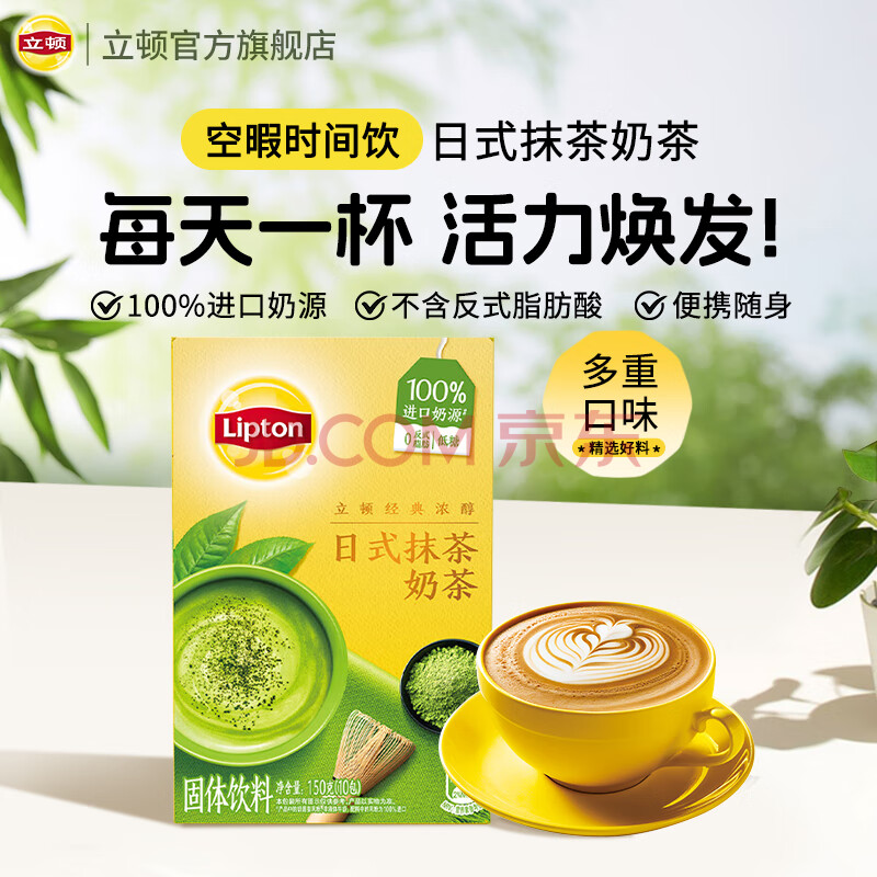 商品相册:立顿经典浓醇奶茶日式抹茶100%进口奶源童年10包150g第1张/共8