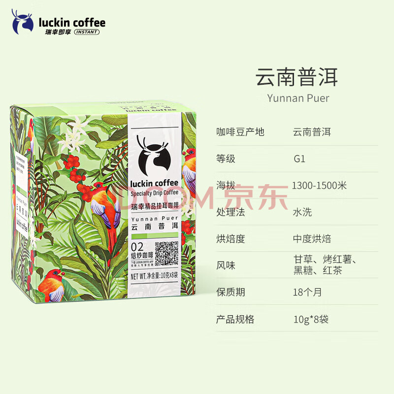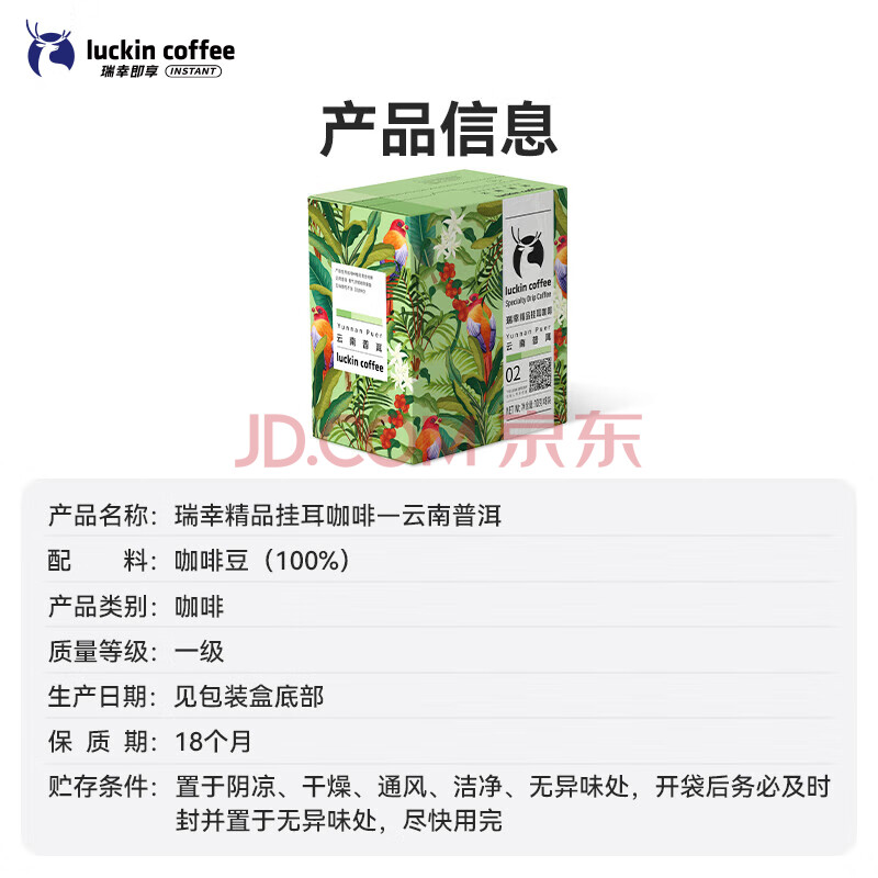 商品相册:瑞幸咖啡原产地系列挂耳咖啡 云南普洱10g*8袋 现磨手冲滤泡挂耳黑咖啡粉第