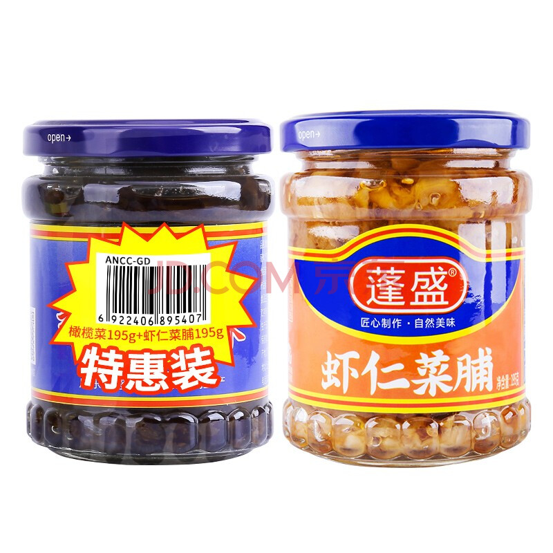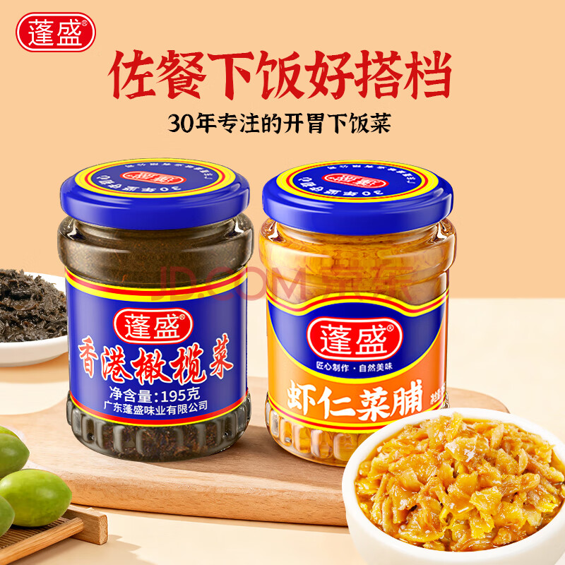 商品相册:蓬盛 酱腌菜 香港橄榄菜195g+虾仁菜脯195g 下饭菜组合装 潮汕特产第