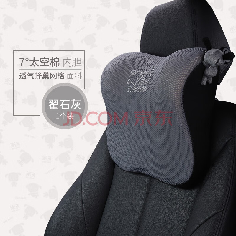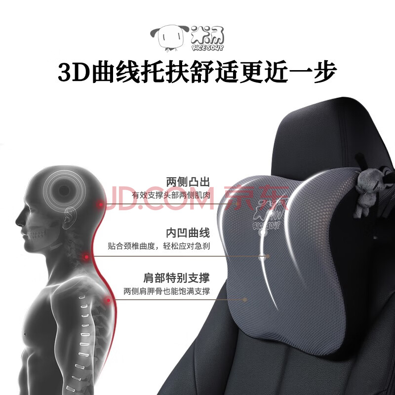 商品相册:爱车屋 ICAROOM 汽车头枕 太空记忆棉护颈靠枕四季通用车枕头 T-662MS-H 翟石灰第