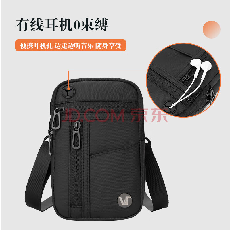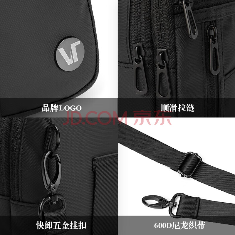 商品相册:维多利亚旅行者斜挎包男士胸包多功能单肩包潮流随身包大容量小背包手机包百搭休闲小挎包男V5016黑色第