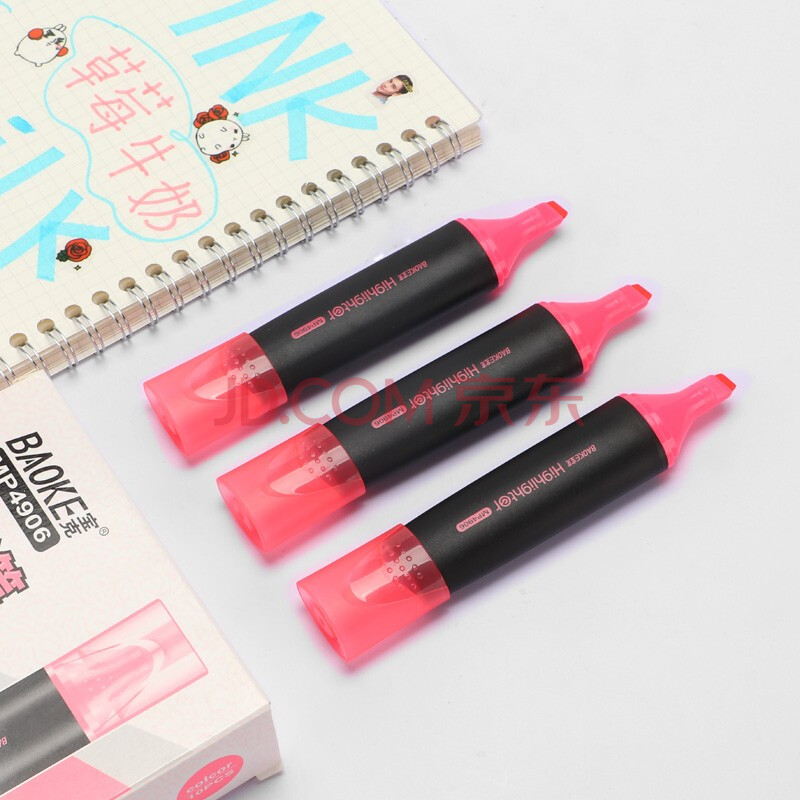 商品相册:宝克(BAOKE) BAOKE MP4906 荧光笔重点标记笔水性记号笔学生办公用 红色 10支/盒第