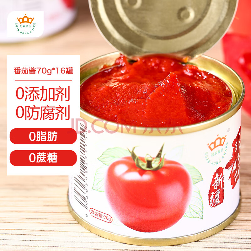 商品相册:冠农股份新疆番茄酱罐头70g*16罐 西红柿番茄膏0添加防腐剂意面薯条调味酱第