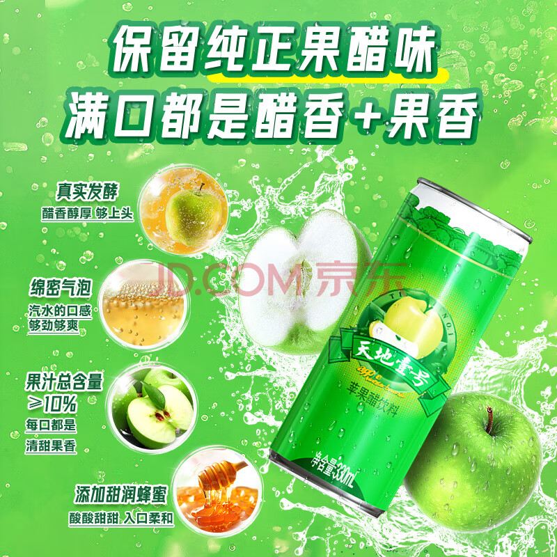 商品相册:天地壹号苹果醋饮料330ml*6 低糖0脂酸爽解腻 多喝醋有好处新老包装随机发第