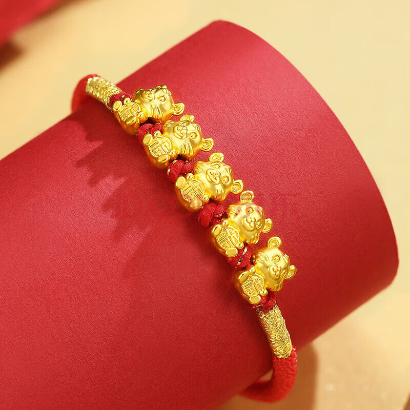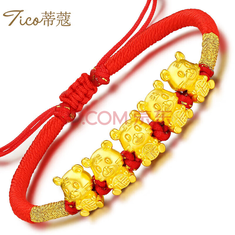 商品相册:蒂蔻(Tico)生日礼物本命年生肖虎足金五福虎黄金转运珠手链编织红绳5D金虎第