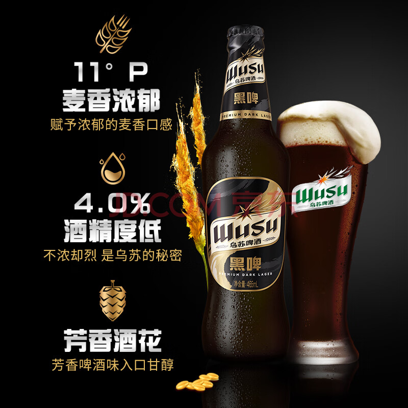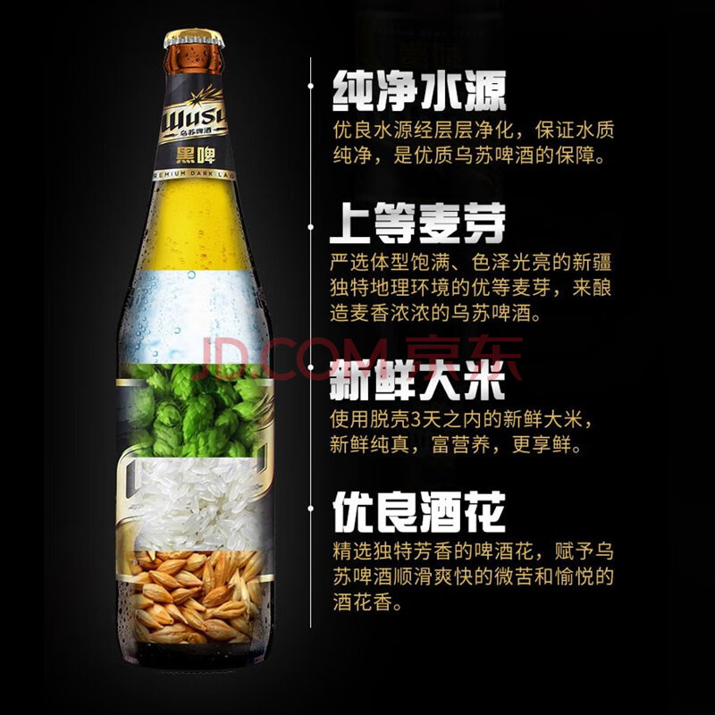 商品相册:乌苏啤酒(wusu)京东自营乌苏黑啤精酿465ml*12瓶/箱整箱装踏青出游第