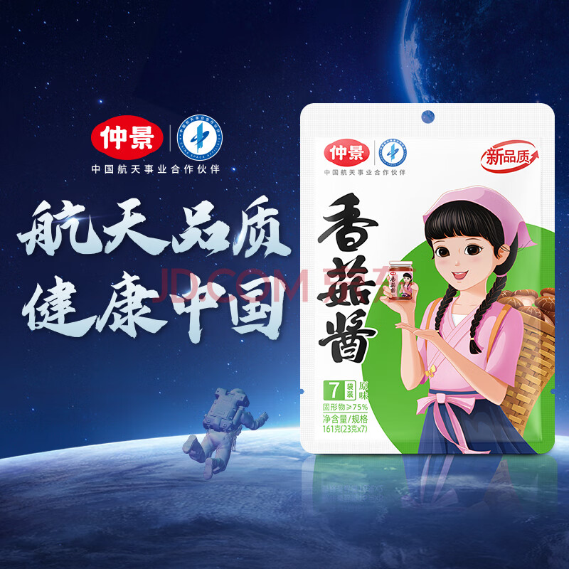 商品相册:仲景 原味香菇酱23gx7袋 拌饭拌面夹馍下饭酱菜蘑菇调味酱便利装第