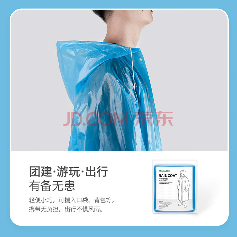 商品相册:蕉趣(BANANA TRIP)一次性雨衣(全新料)成人户外便携连帽四排扣连体雨披白色1个装第