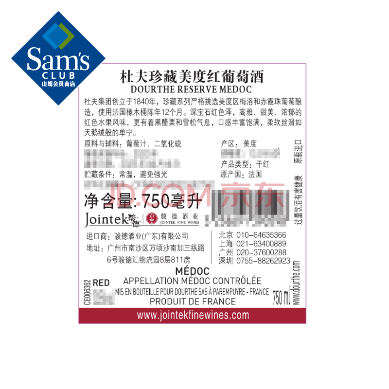 商品相册:法国进口 珍藏美度红葡萄酒 750mL 750mL第