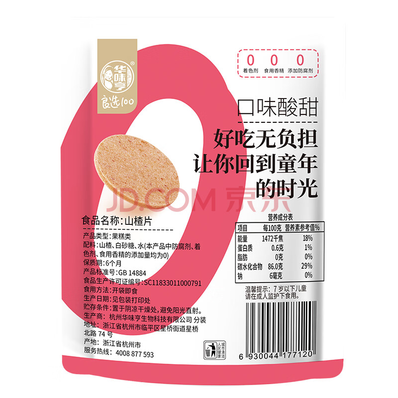 商品相册:华味亨山楂片218g/袋儿童零食山楂干休闲办公室健康零食小吃第