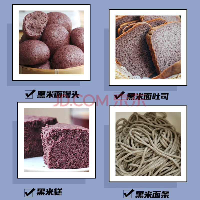 商品相册:沐谷 东北黑米面2斤(纯黑米面杂粮粉黑米粉发糕窝窝头馒头烘焙原料)第