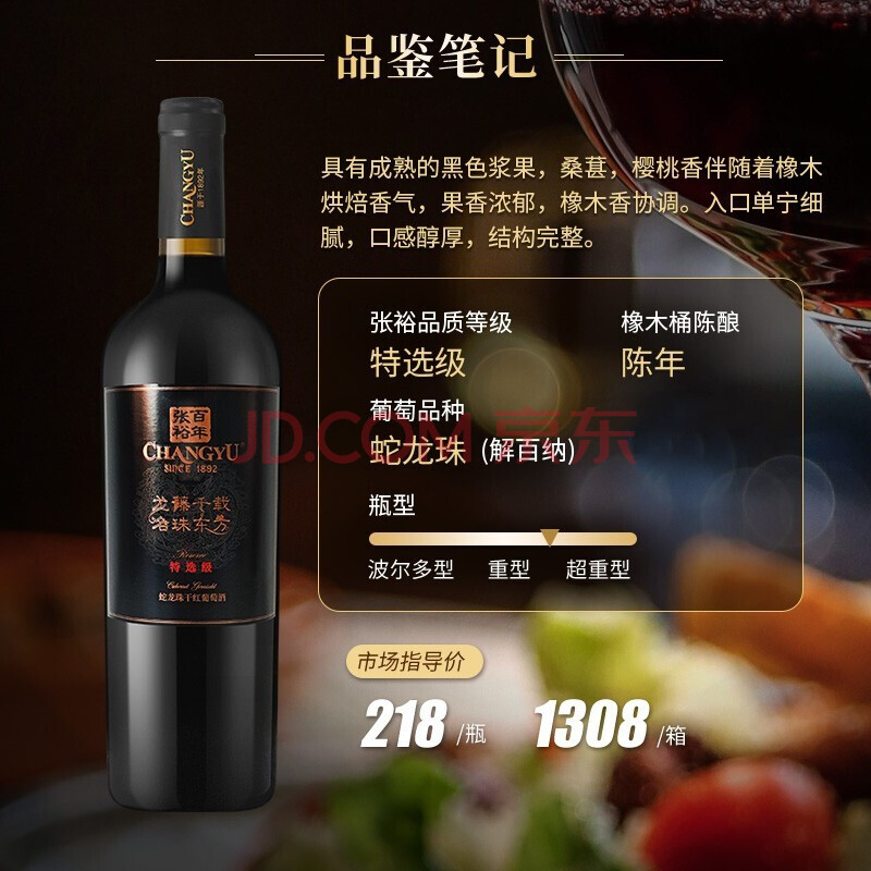 商品相册:张裕旗下龙藤名珠 特选级蛇龙珠干红葡萄酒750ml单瓶装 自营红酒送礼第