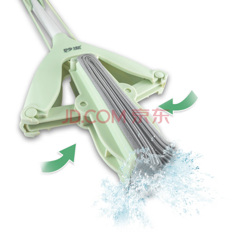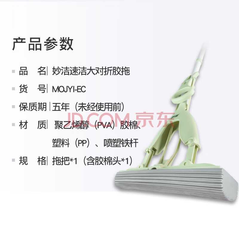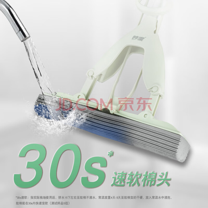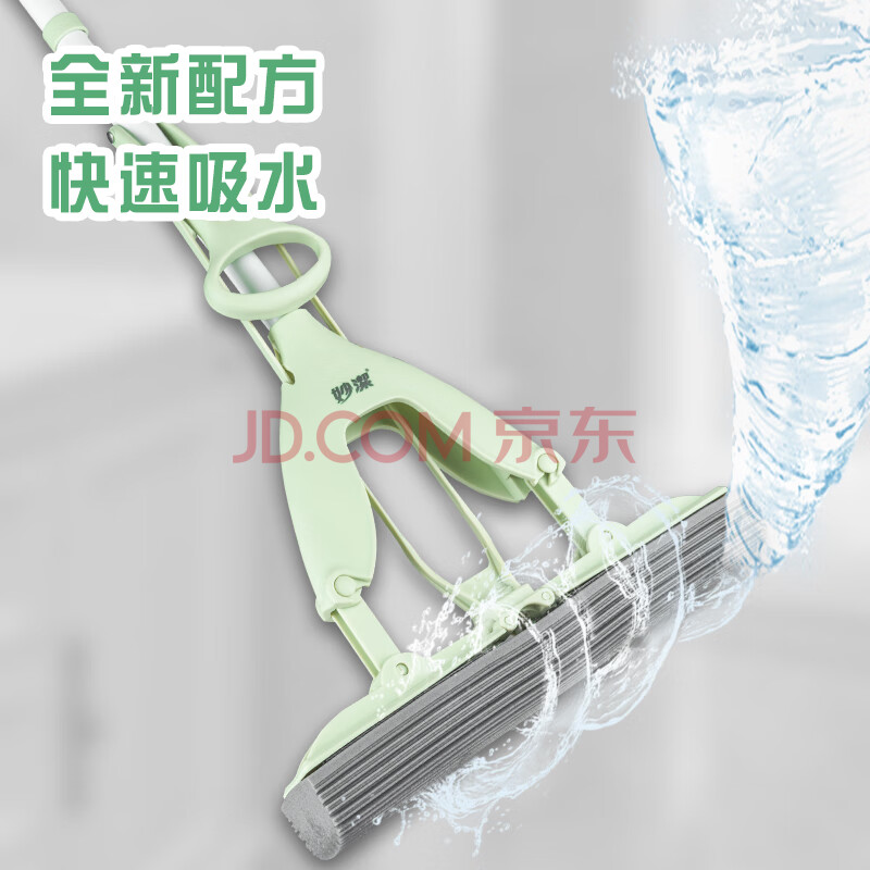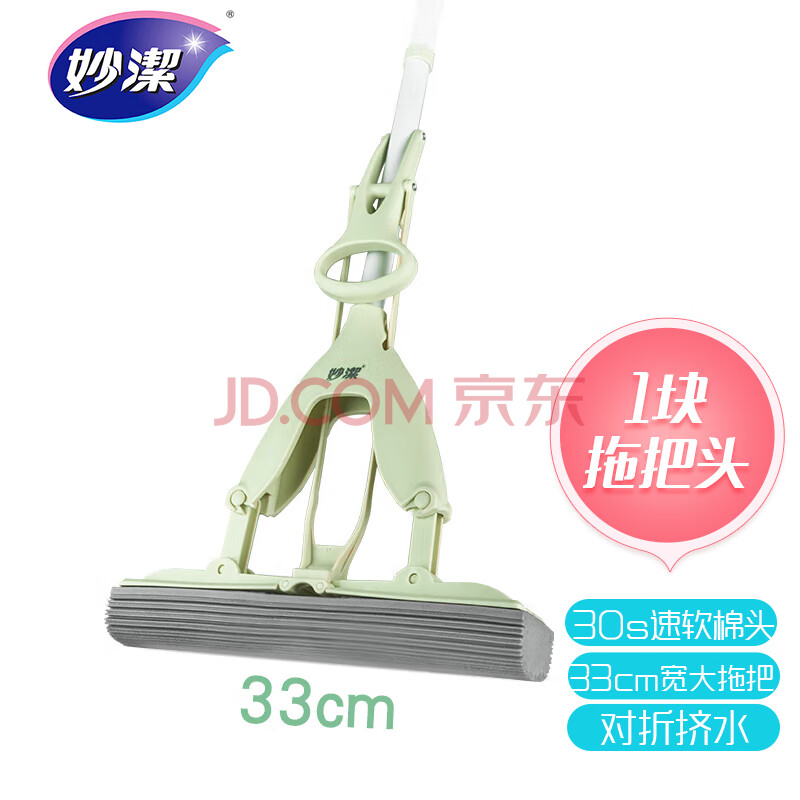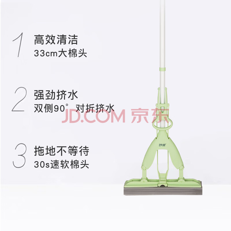 商品相册:妙洁胶棉拖把33cm杆长137共1头对折式大懒人家用一拖净免手洗海绵吸水第