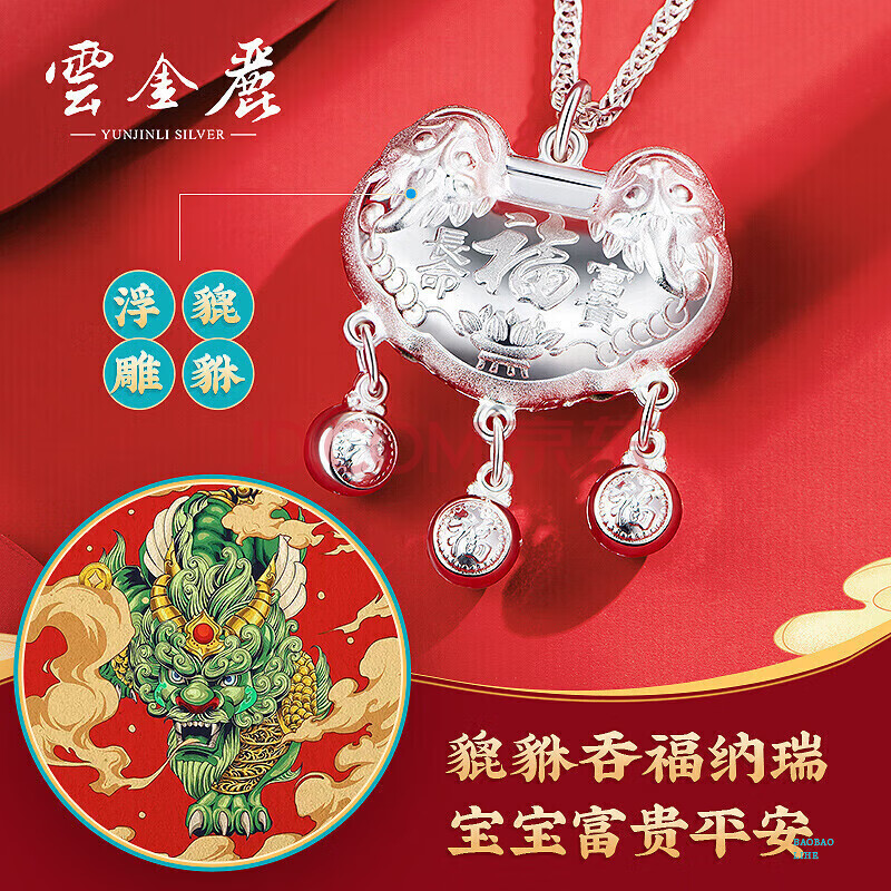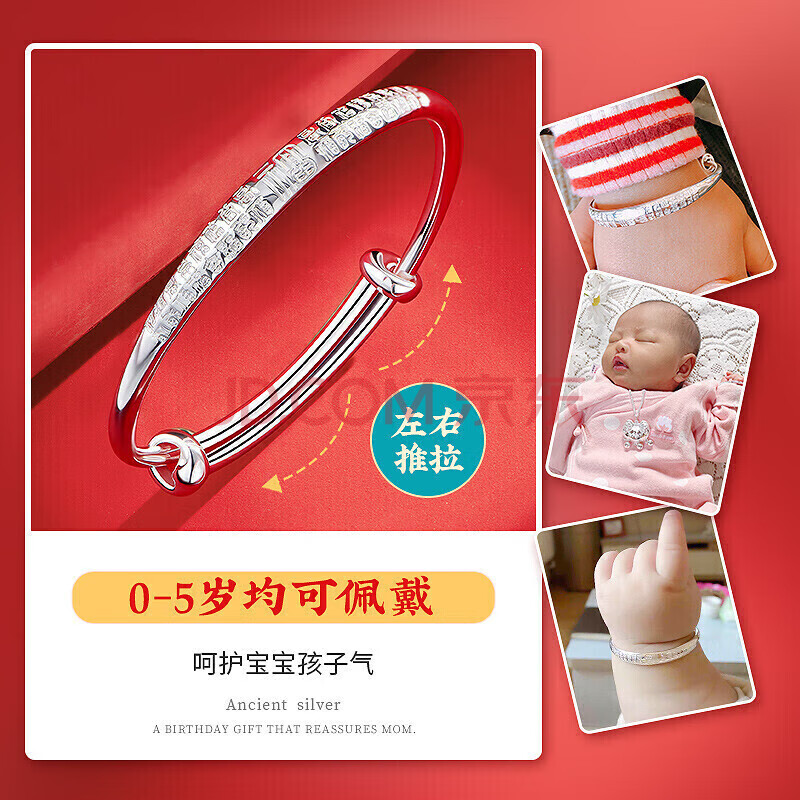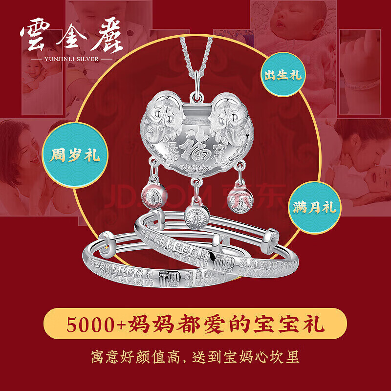商品相册:云金丽银手镯婴儿999足银福瑞长命锁宝宝银饰套装儿童生日周岁满月礼物第