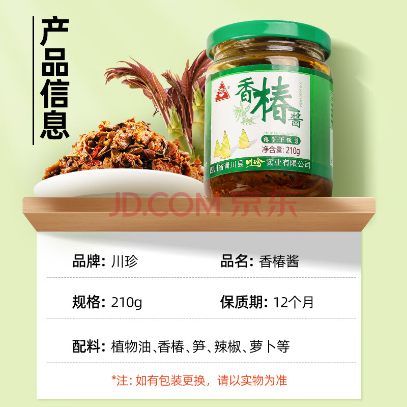 商品相册:川珍 香椿酱210g 香辣香椿芽咸菜酱菜椿笋下饭菜拌饭拌面夹馍酱第