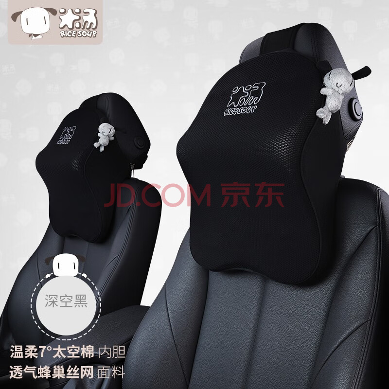 商品相册:爱车屋 ICAROOM 汽车头枕 太空记忆棉护颈靠枕四季通用车枕头 T-602MS-B 深空黑第