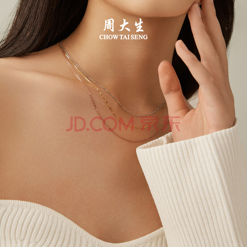 商品相册:周大生【生日礼物】18K黄金项链O字链素链锁骨链送女友约1.5g/45cm第