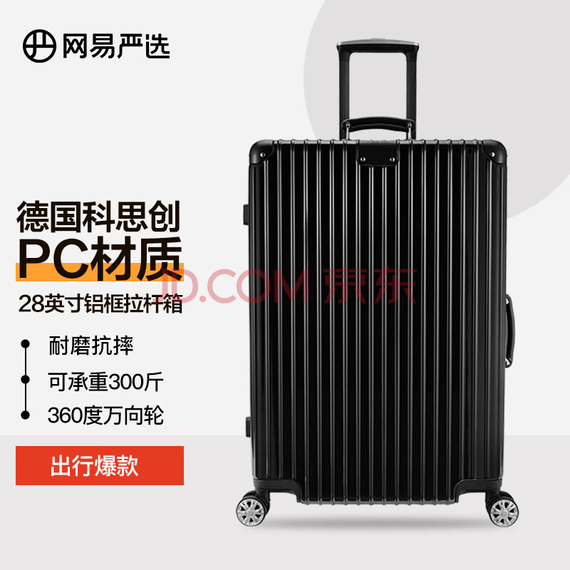 商品相册:网易严选大容量铝镁框小金刚PC行李箱商务拉杆箱旅行箱28英寸亮面经典黑第
