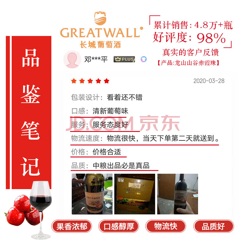 商品相册:长城(GreatWall)龙山山谷赤霞珠干红葡萄酒 750ML*6瓶整箱装 中粮出品 年货送礼第