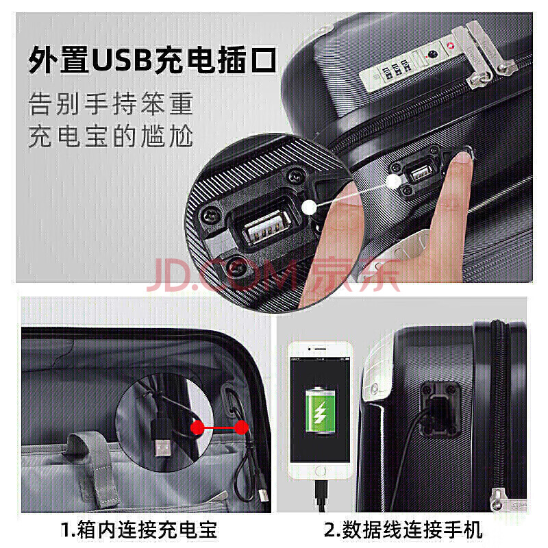 商品相册:莎米特拉杆箱万向轮行李箱小型16英寸带USB接口轻便登机箱PC338TCU黑色第
