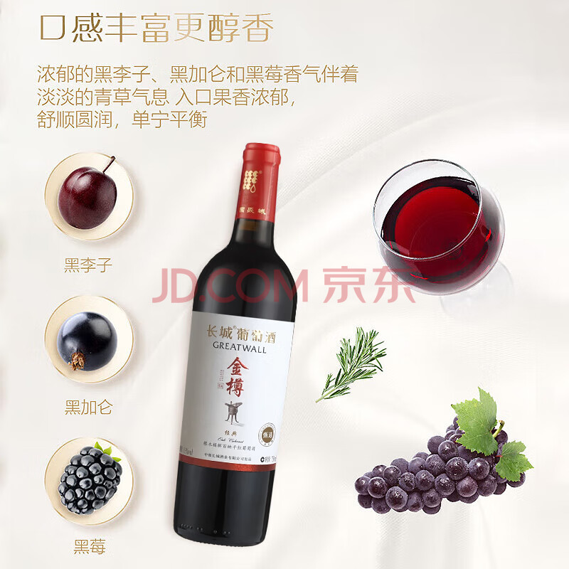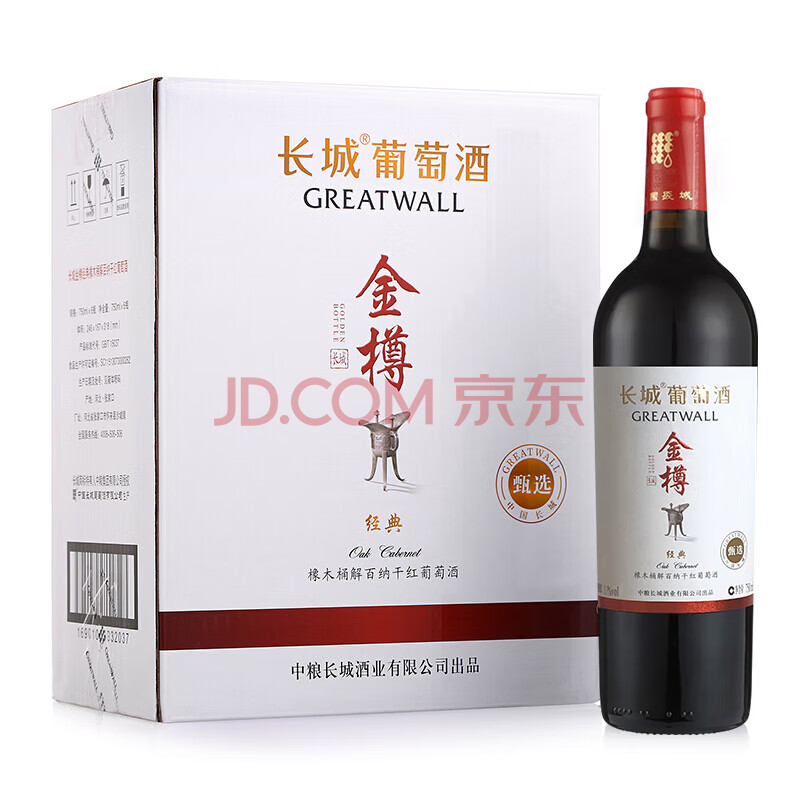 商品相册:长城金樽经典甄选橡木桶解百纳干红葡萄酒750ml*6瓶整箱装送礼第