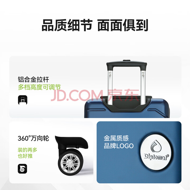 商品相册:Diplomat外交官商务万向轮拉杆箱旅行箱TSA密码箱行李箱TC-6902蓝色20英寸第