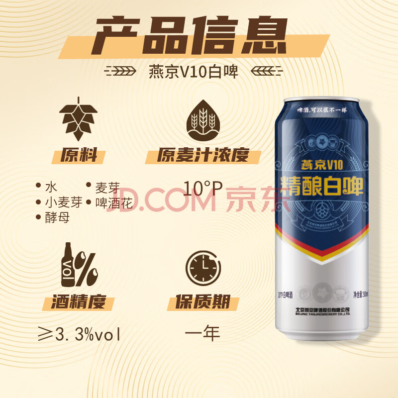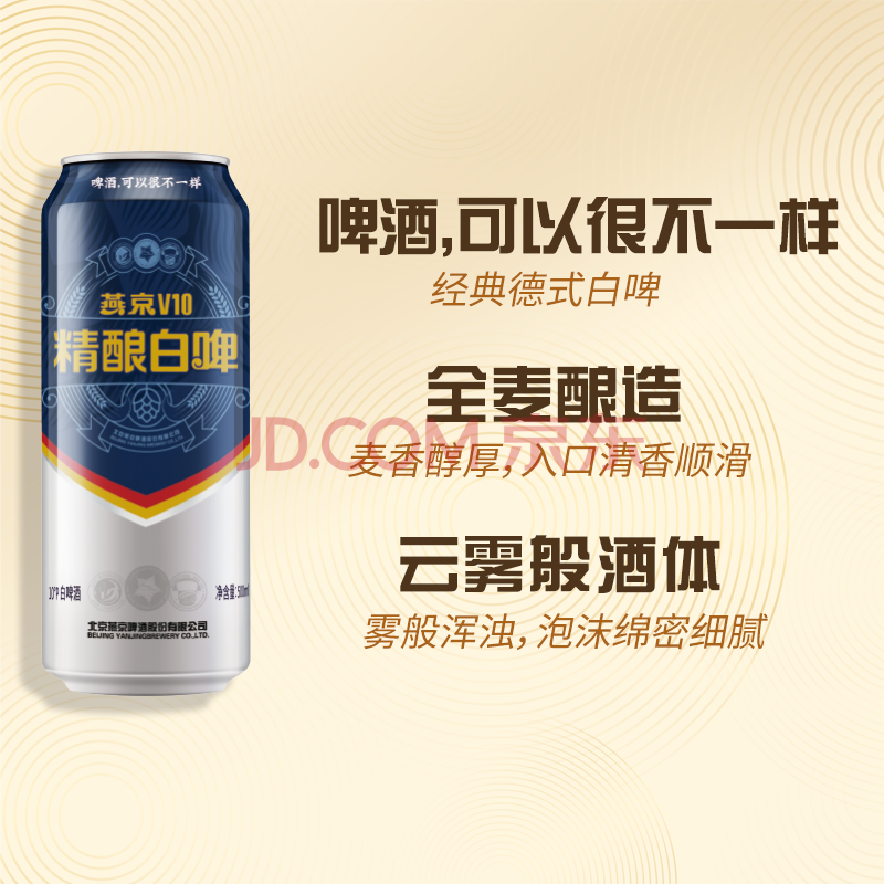 商品相册:燕京啤酒 V10白啤10°P精酿啤酒500ml*12听 整箱装 春日热卖踏春送礼第