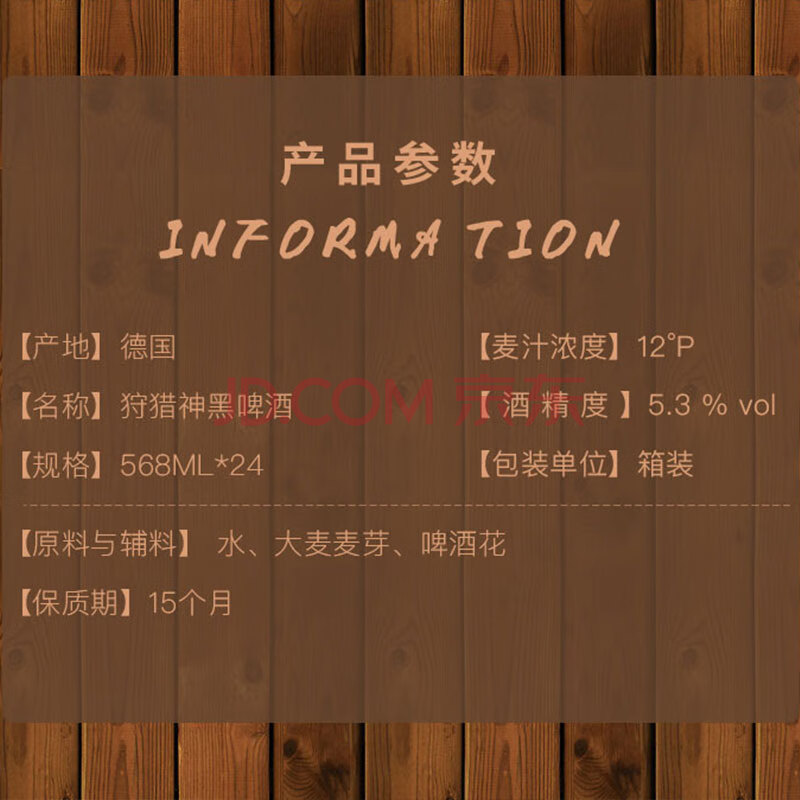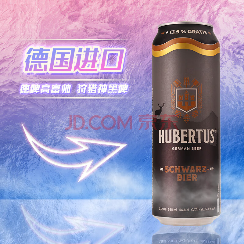 商品相册:狩猎神(Hubertus)黑啤酒568ml*24听 整箱装 德国原装进口踏春送礼第