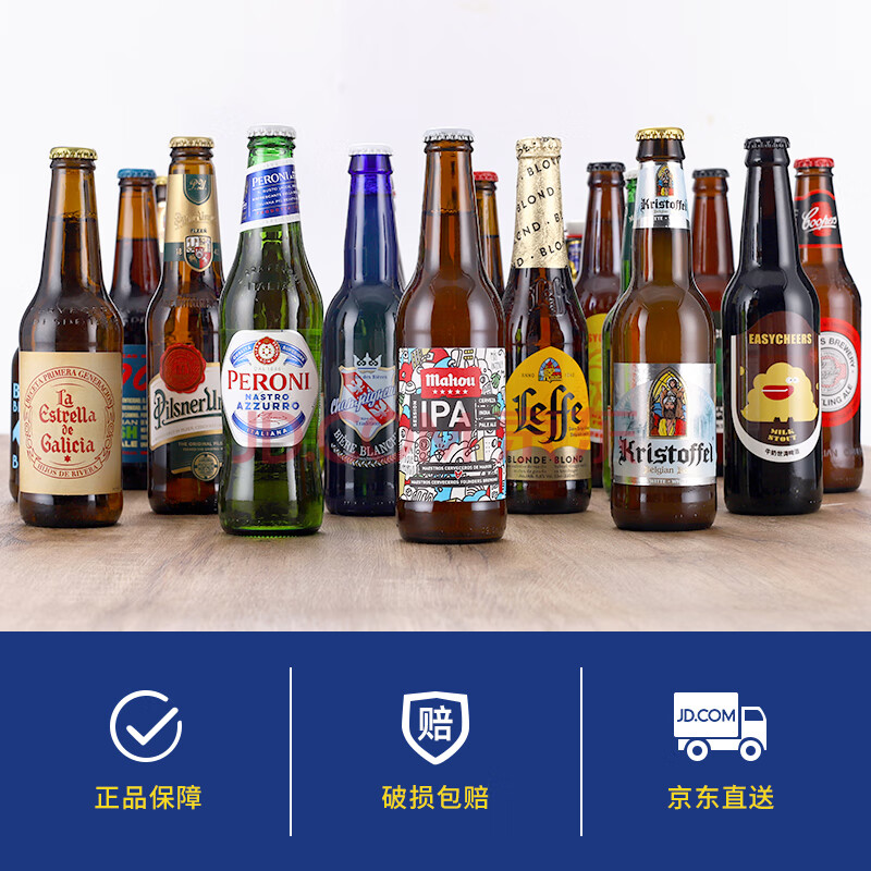 商品相册:Easycheers精酿啤酒组合礼盒多国24支+吧台垫 多国进口Ipa白啤黑啤 啤酒整箱第