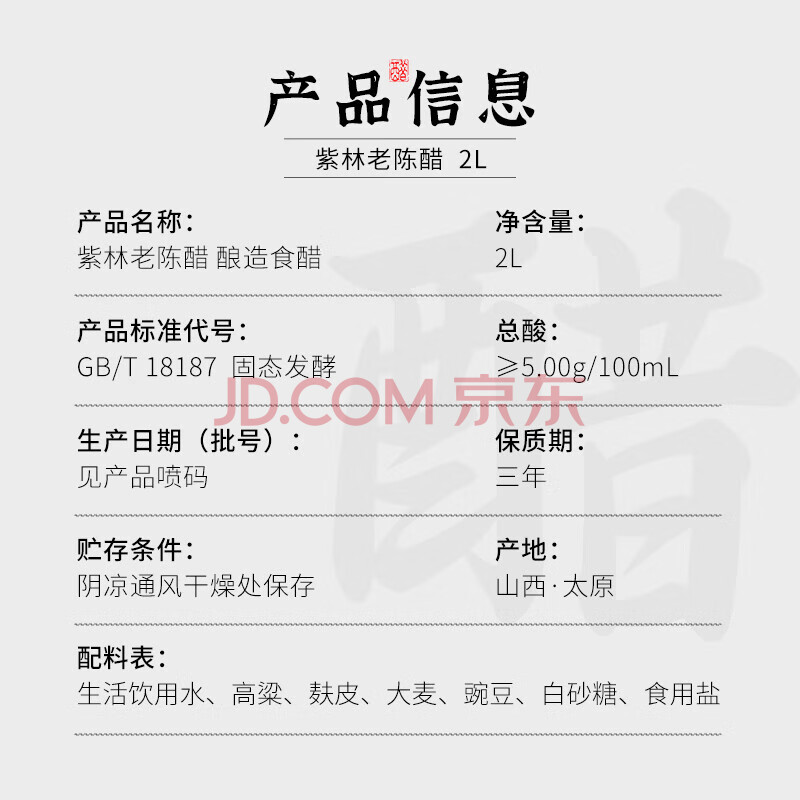 商品相册:紫林醋5度珍酿老陈醋2L调味品0添加防腐剂纯粮酿造山西特产凉拌醋腌制第