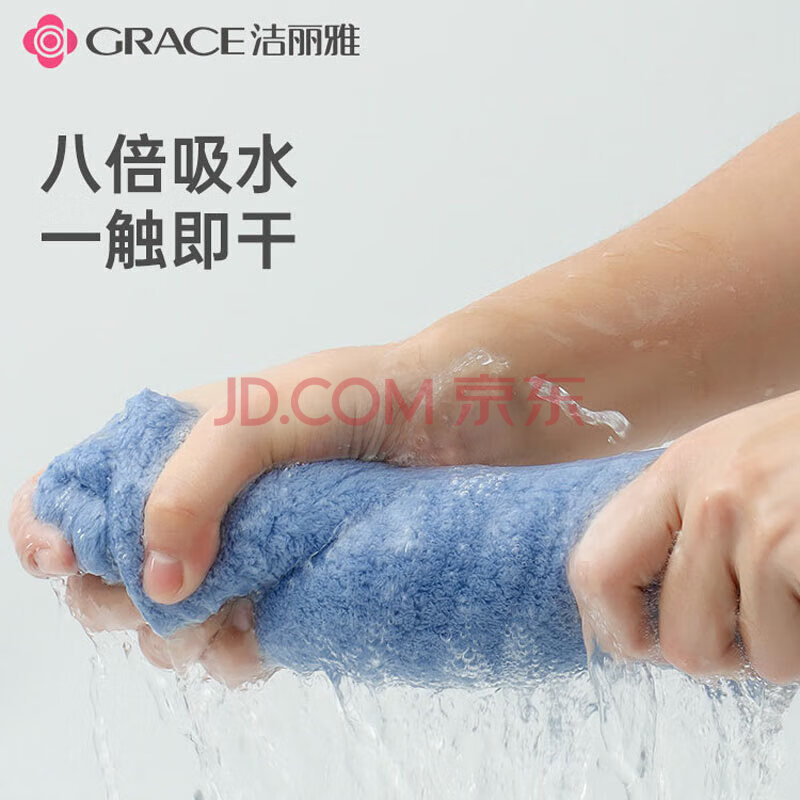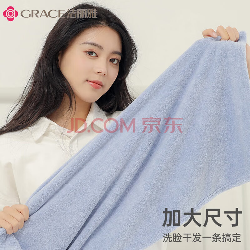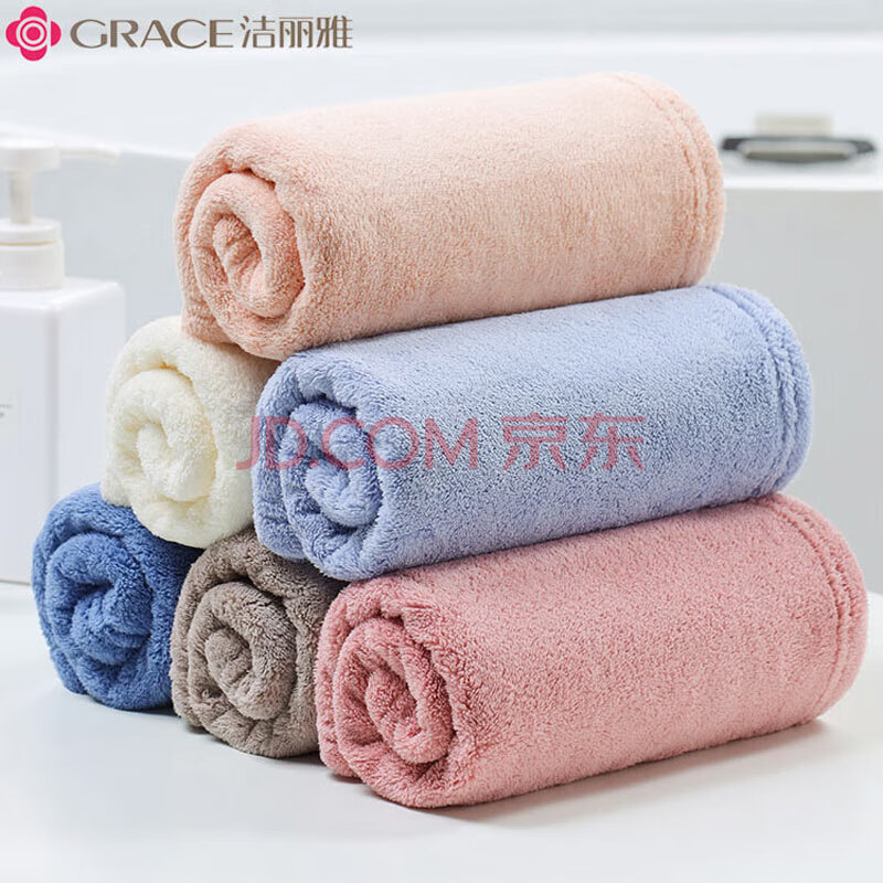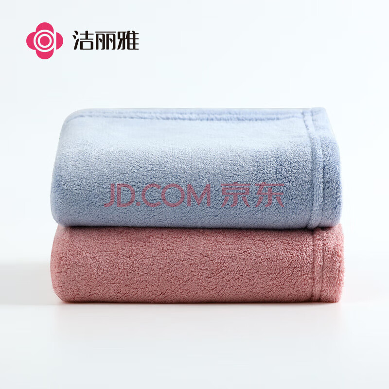商品相册:洁丽雅(Grace)抗菌加厚毛巾2条A类雪花绒吸水男女洗脸洗澡干发大面巾 水蓝+玫粉第