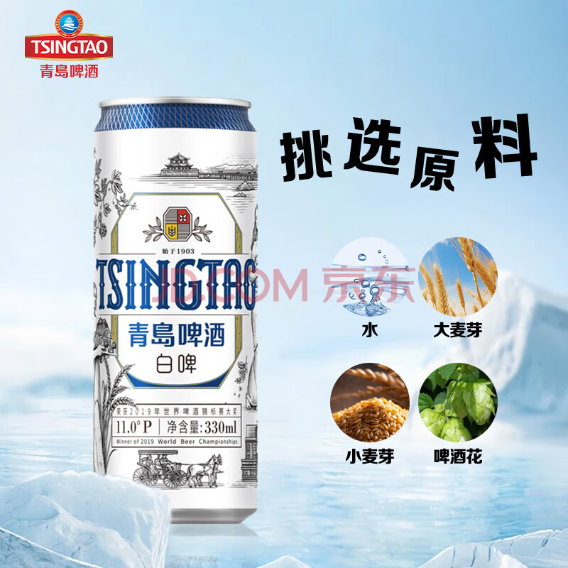 商品相册:青岛啤酒(TsingTao)全麦白啤原麦汁浓度11°P 330ml*24听啤酒整箱箱装批发24瓶第