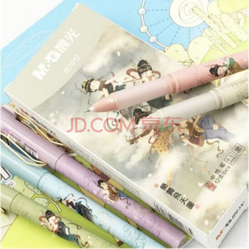 商品相册:晨光(M&G)67104中性笔清新季水性笔创意时尚学生水笔0.38mm全针管签字笔 B7612梦回敦煌笔-黑色12支装第