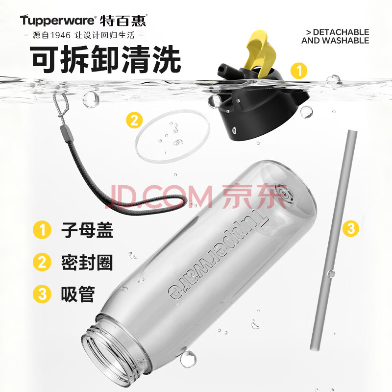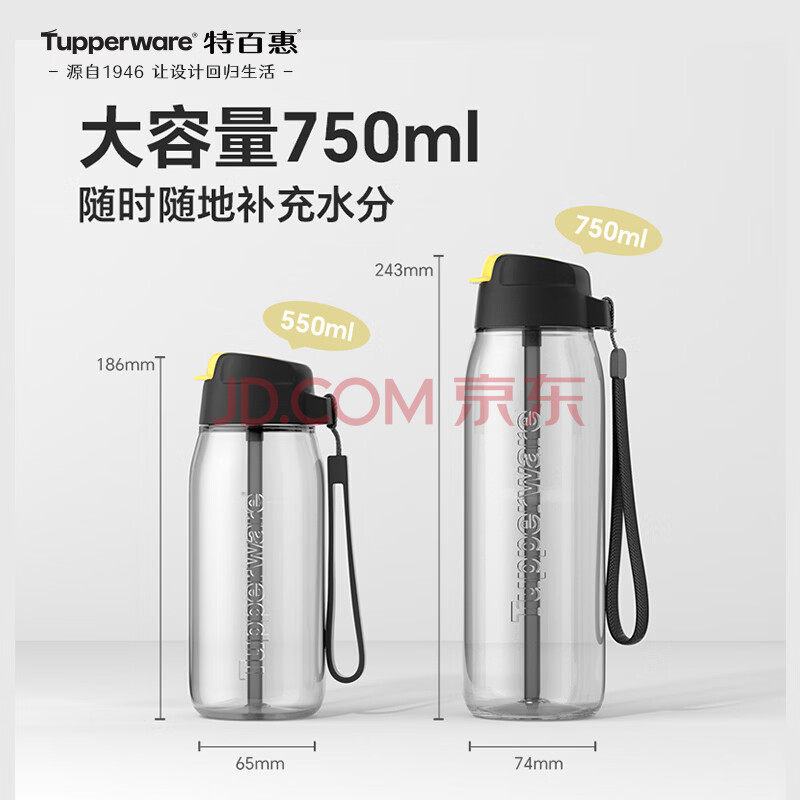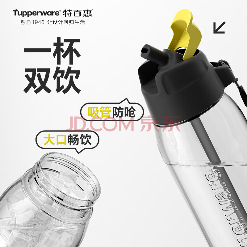 商品相册:特百惠(Tupperware)乐动750ml男女士学生大容量泡茶杯运动塑料水杯子带吸管 酷炫黑第