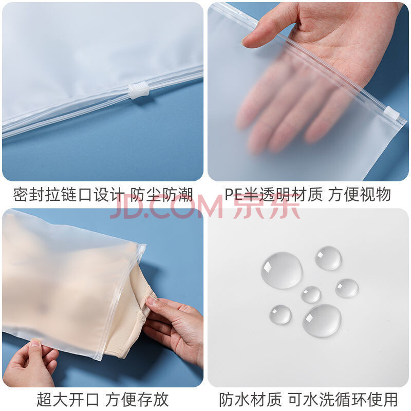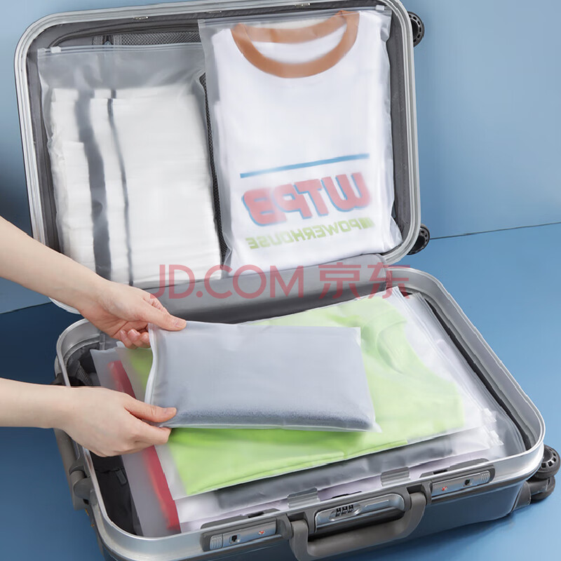 商品相册:班哲尼 旅行收纳袋 行李衣服整理袋 半透明磨砂袋子 加厚塑料洗漱袋 小中大加大超大各2个装第