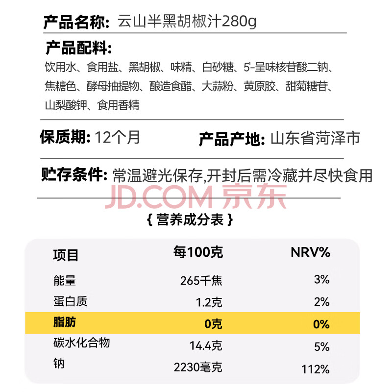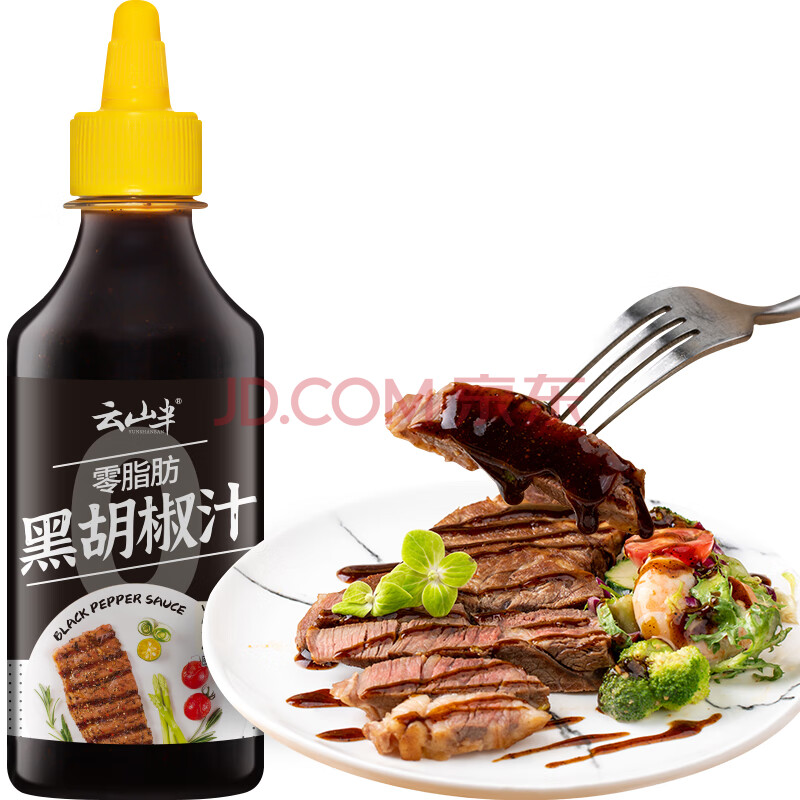 商品相册:云山半0脂肪黑胡椒酱汁280g 低脂黑椒汁牛排意面烤肉健身轻食沙拉调味第