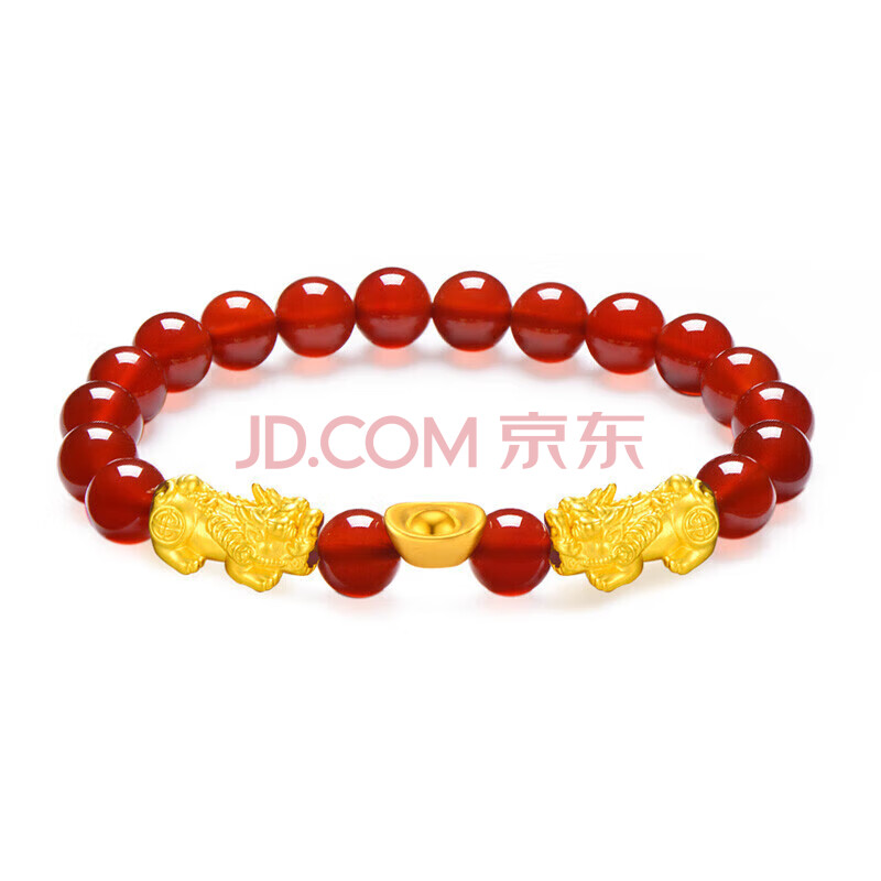 商品相册:蒂蔻(Tico)招财貔貅元宝足金黄金手链女3D硬金转运珠红玛瑙手串生日礼物第