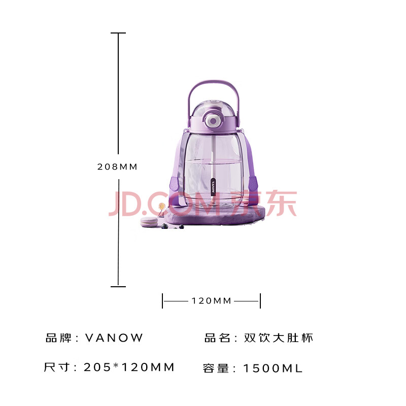 商品相册:Vanow大肚杯大容量水杯女高颜值吸管杯子儿童学生便携运动水杯壶塑料杯第