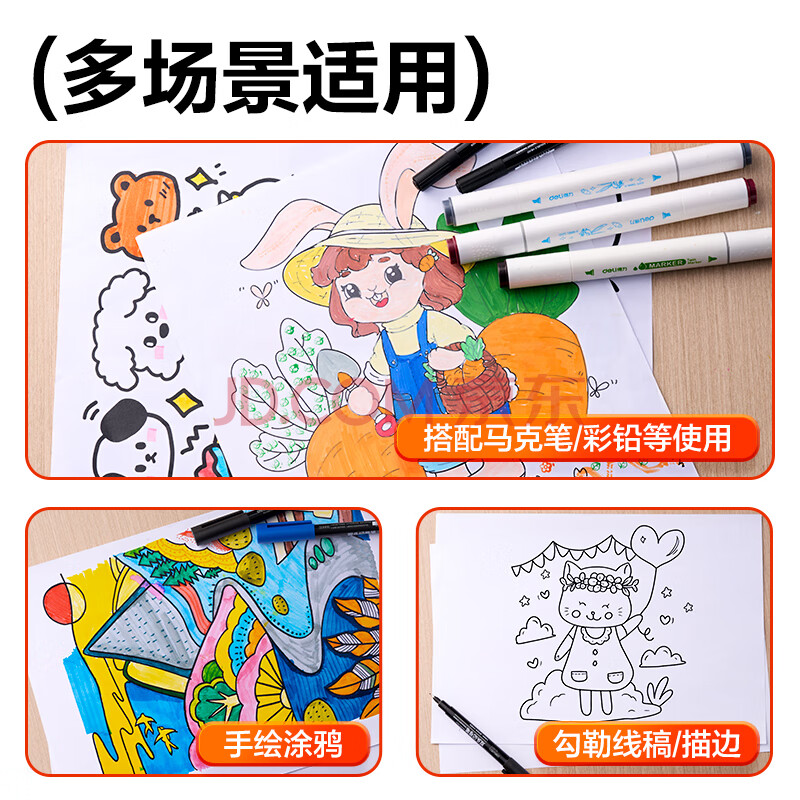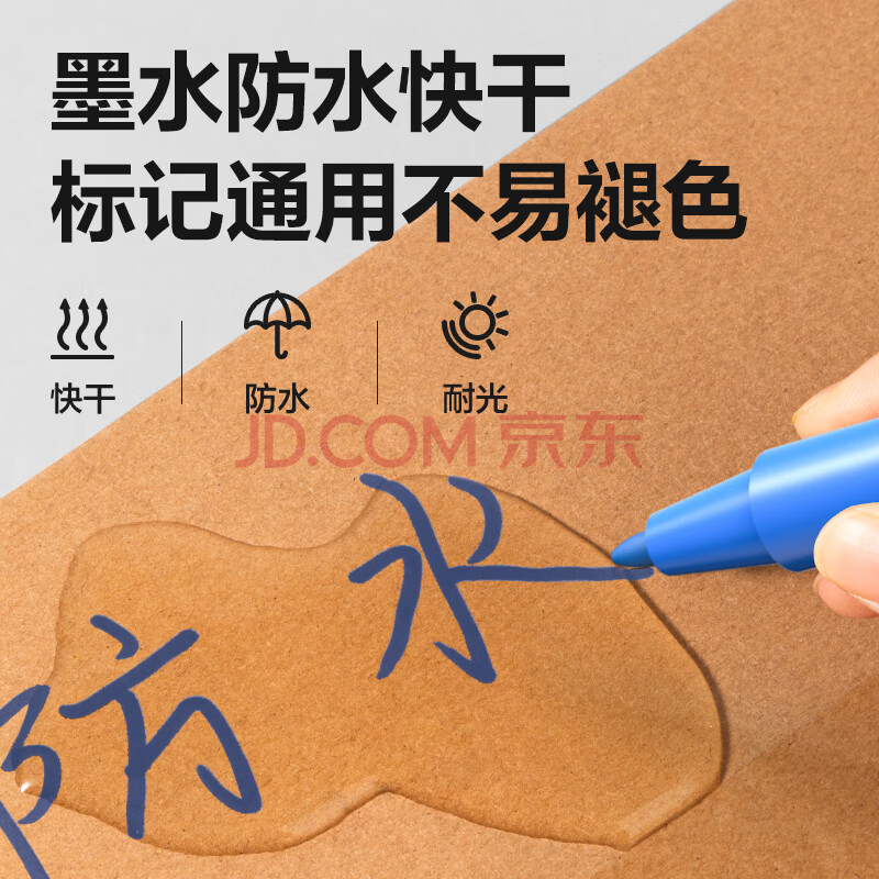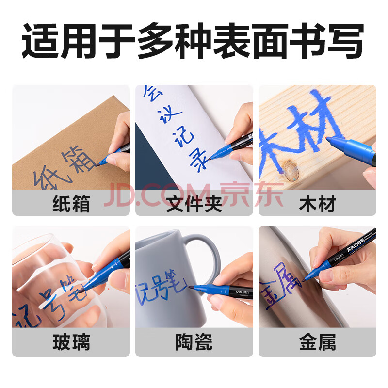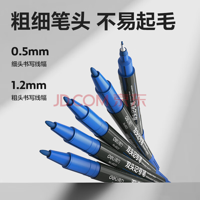商品相册:得力(deli)0.5mm/1.2mm小双头记号笔签字笔会议笔 儿童学生马克笔勾线笔 12支/盒 蓝色 6823第