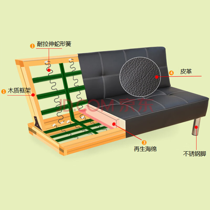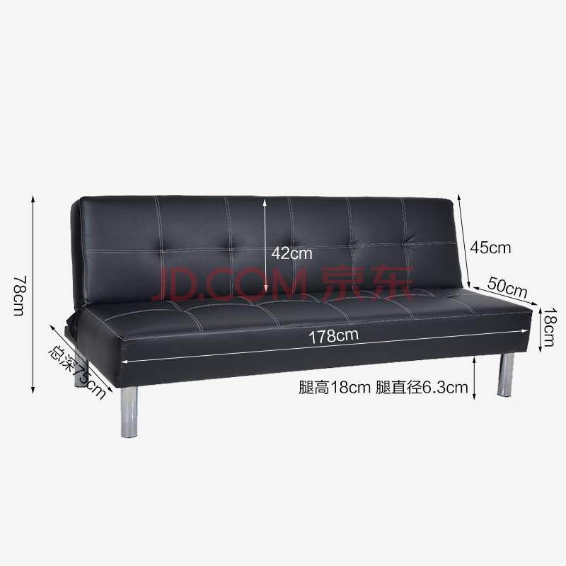 商品相册:华恺之星 沙发床 两用折叠沙发多功能小户型双人位皮革沙发 HKS10黑色皮革第