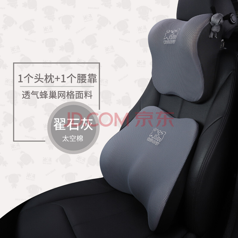 商品相册:爱车屋 ICAROOM 汽车头枕腰靠套装 记忆棉腰枕护腰靠背垫车载头靠枕护颈枕 T-662/632MS-H 翟石灰第