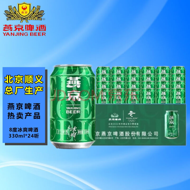 商品相册:燕京啤酒 8度冰爽 低度啤酒 北京顺义生产 330ml*24听 整箱装第