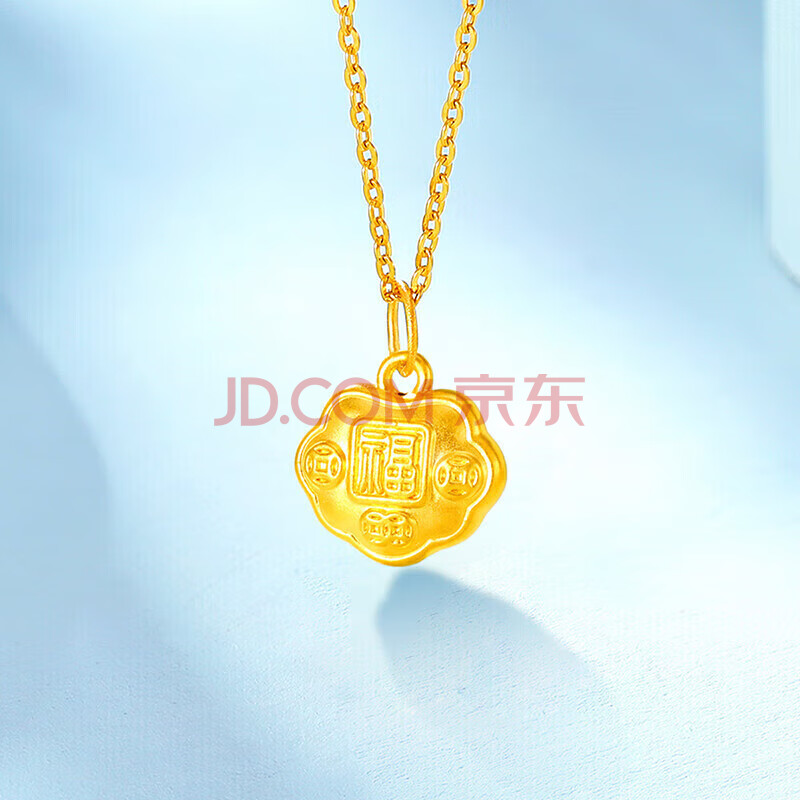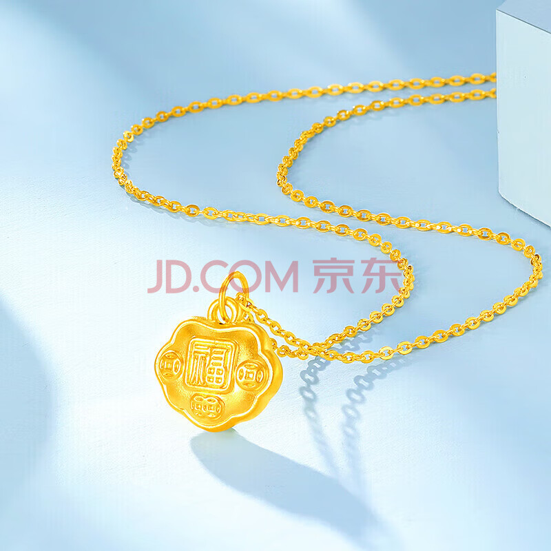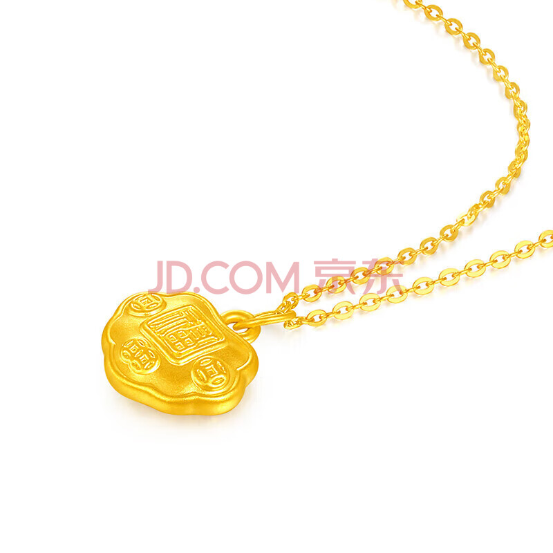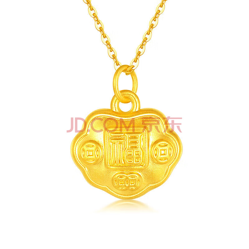 商品相册:梦金园黄金吊坠足金福字如意锁包挂坠5D无氰转运珠第